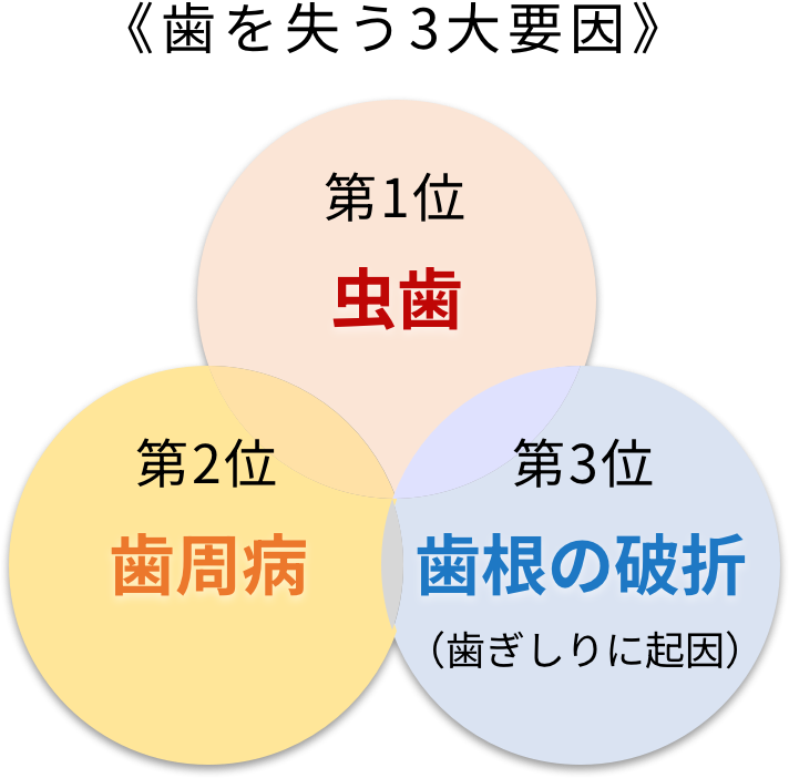 この歯ぎしり、実は歯を失う3大要因のひとつなのです。